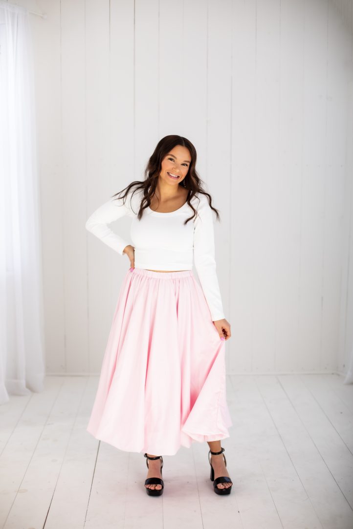 8. Celia Bubble Skirt Pattern (March 2025) – Unsure what to wear on Easter Sunday? Look your Sunday best with this gorgeous spring skirt pattern from Aishat Sulaiman. This bubble skirt pattern is made in soft, ballet slipper pink and works best with fabrics like silk or taffeta. This skirt pattern features a playful bubble hem and elastic waistband and can be customized to your preference of length.