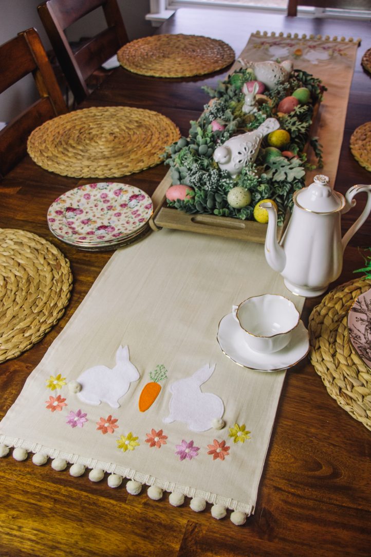 Hop to It Embroidered Table Runner (March 2022). Designer: Sophie Tarrant. Photography: Ashlee Cole for Ampry Publishing LLC.