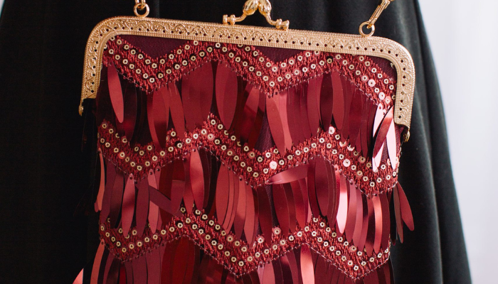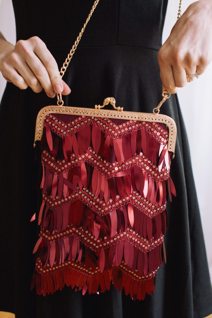 Ruby Paillette Evening Bag Pattern (November 2023). Photography by Ashlee Cole Photography.