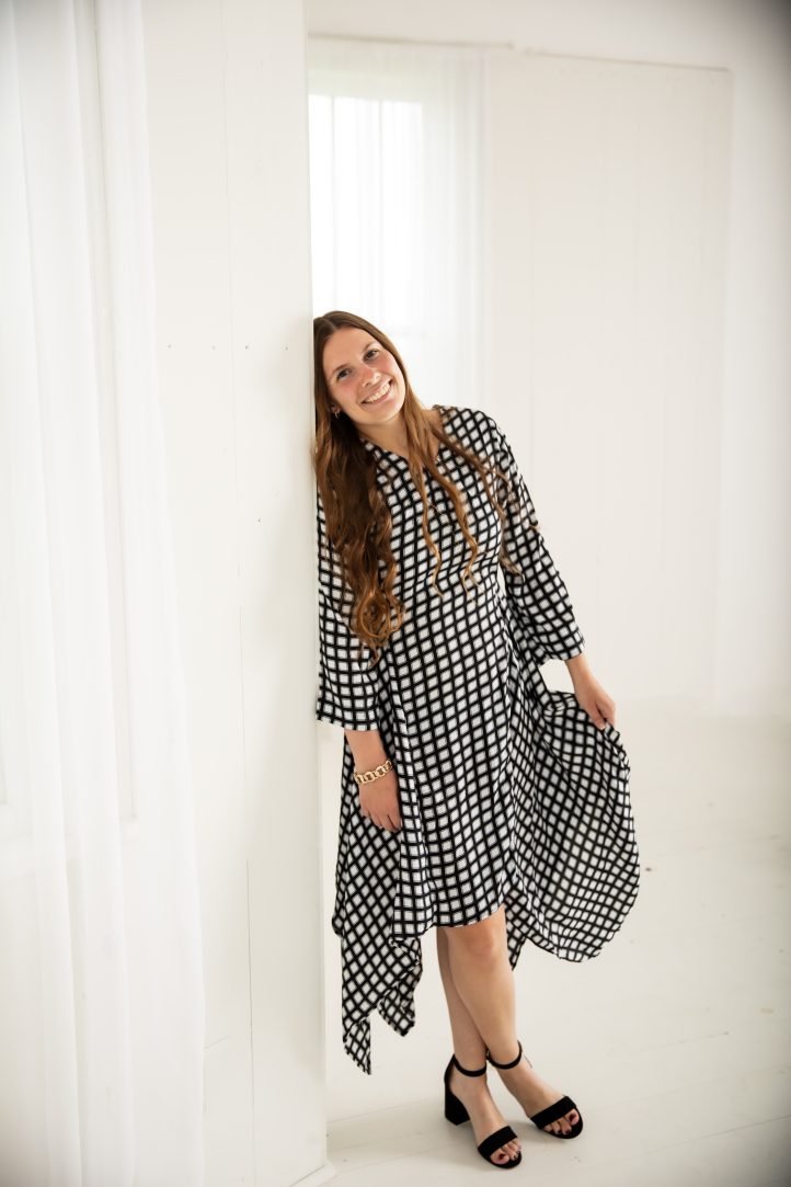 Kenna Handkerchief Hem Dress Pattern (August 2025). Photography by Kelsey Wolfe Photography.