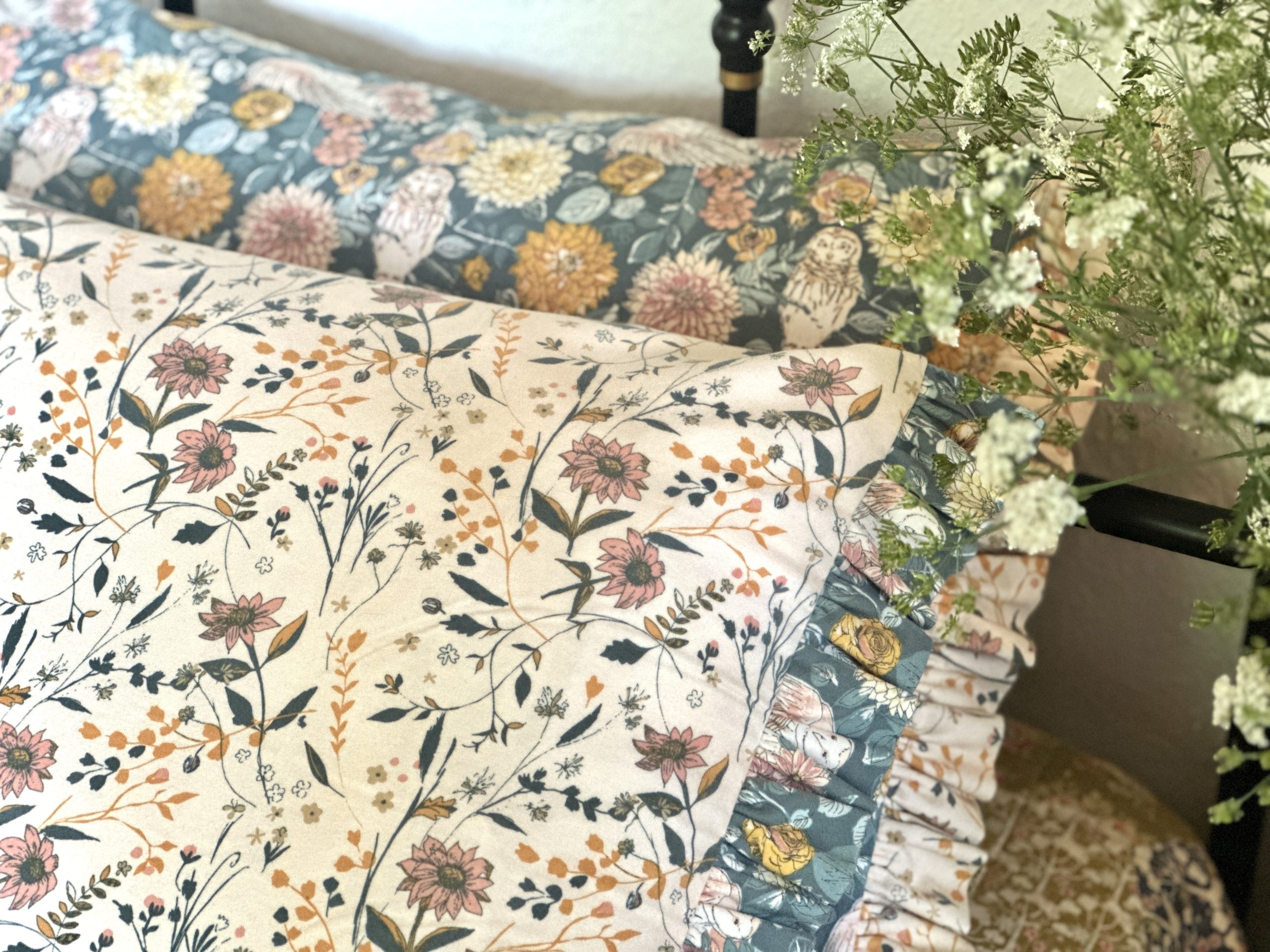 - Fabric (Note: All fabrics are all by Art Gallery Fabrics from the Willow collection by Sharon Holland. The amounts are for two pillowcases.)