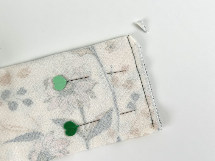 - Clip across the corners on the top to reduce bulk and turn the ruffle the right way out. Press so that the ends are perfect and press to create a center crease along the length.