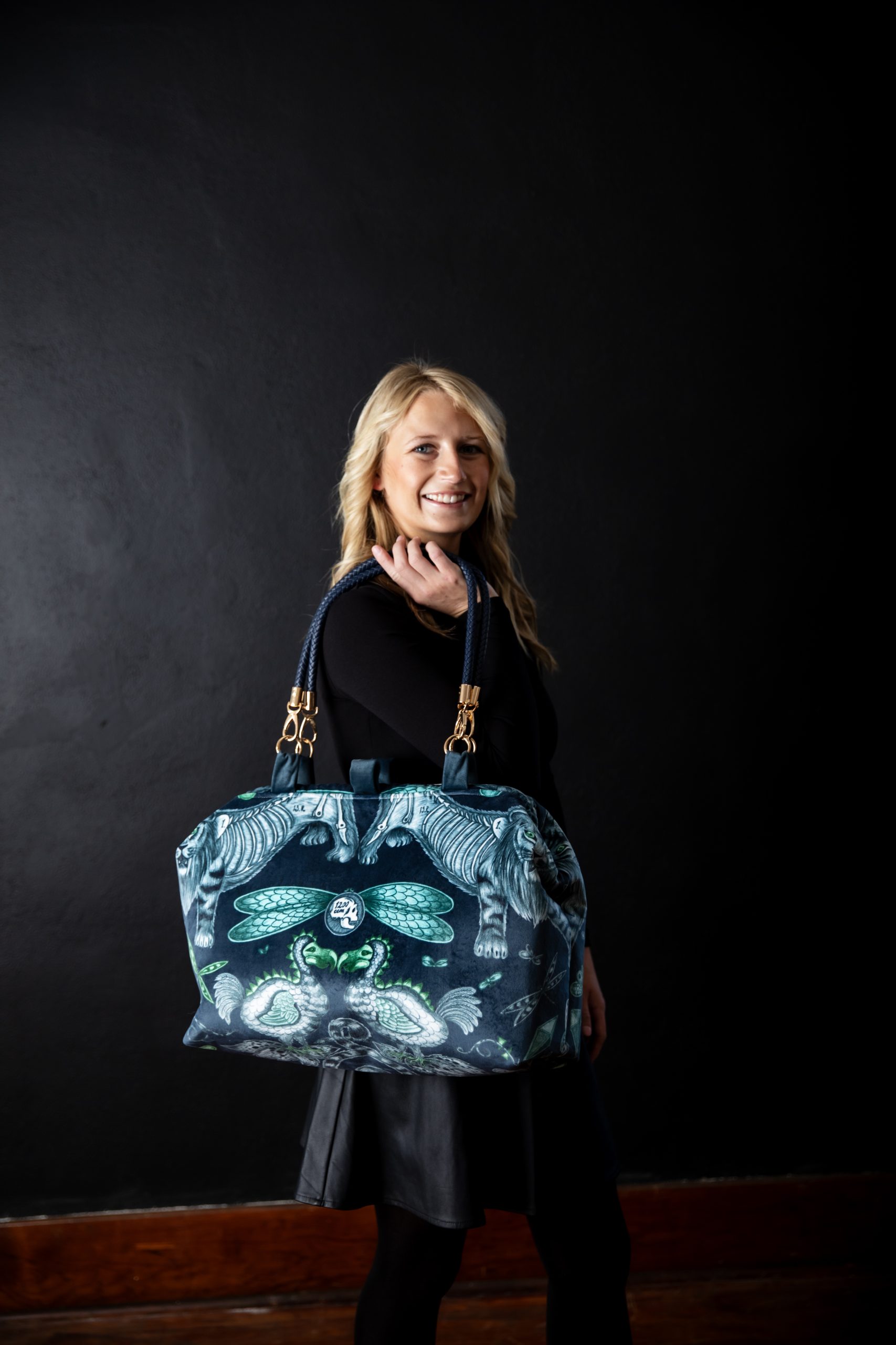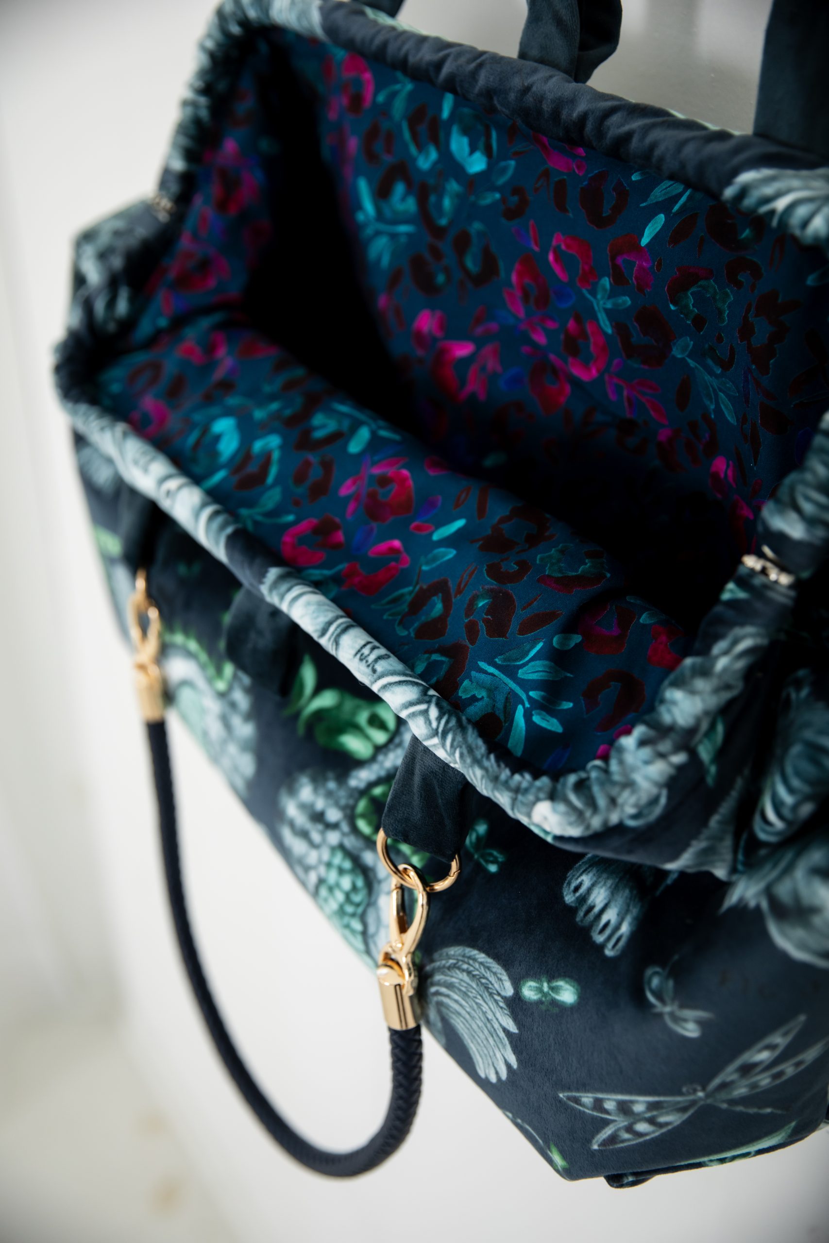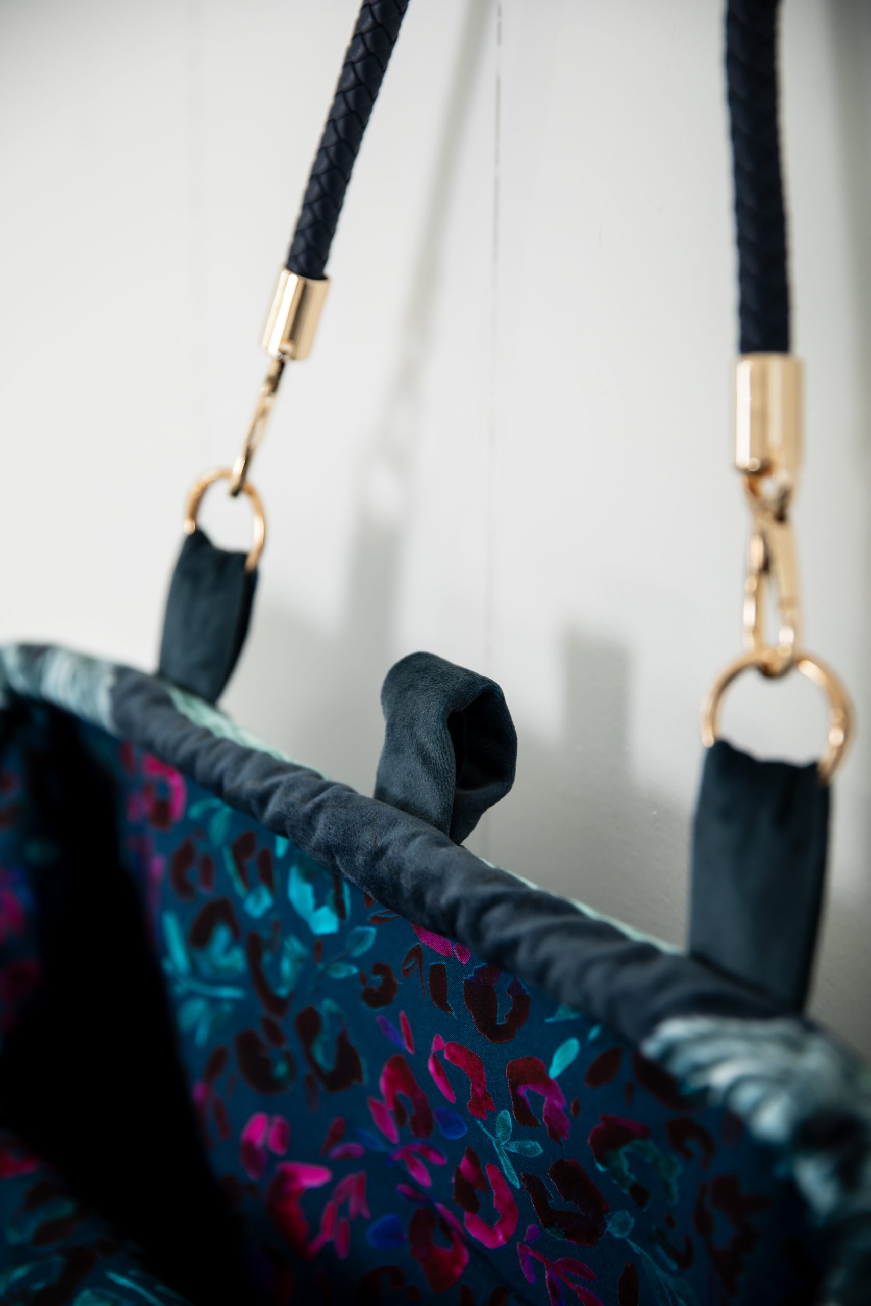 - We’ve suggested using 1-1/2 yards of velvet fabric for your bag outer, which should be more than enough. However, if you choose a bold, large-scale print (as our designer did), you might need a little extra fabric to match the print repeat perfectly on each side of the bag. This isn’t essential, but it gives your finished bag a truly professional finish and is well worth the extra yardage.