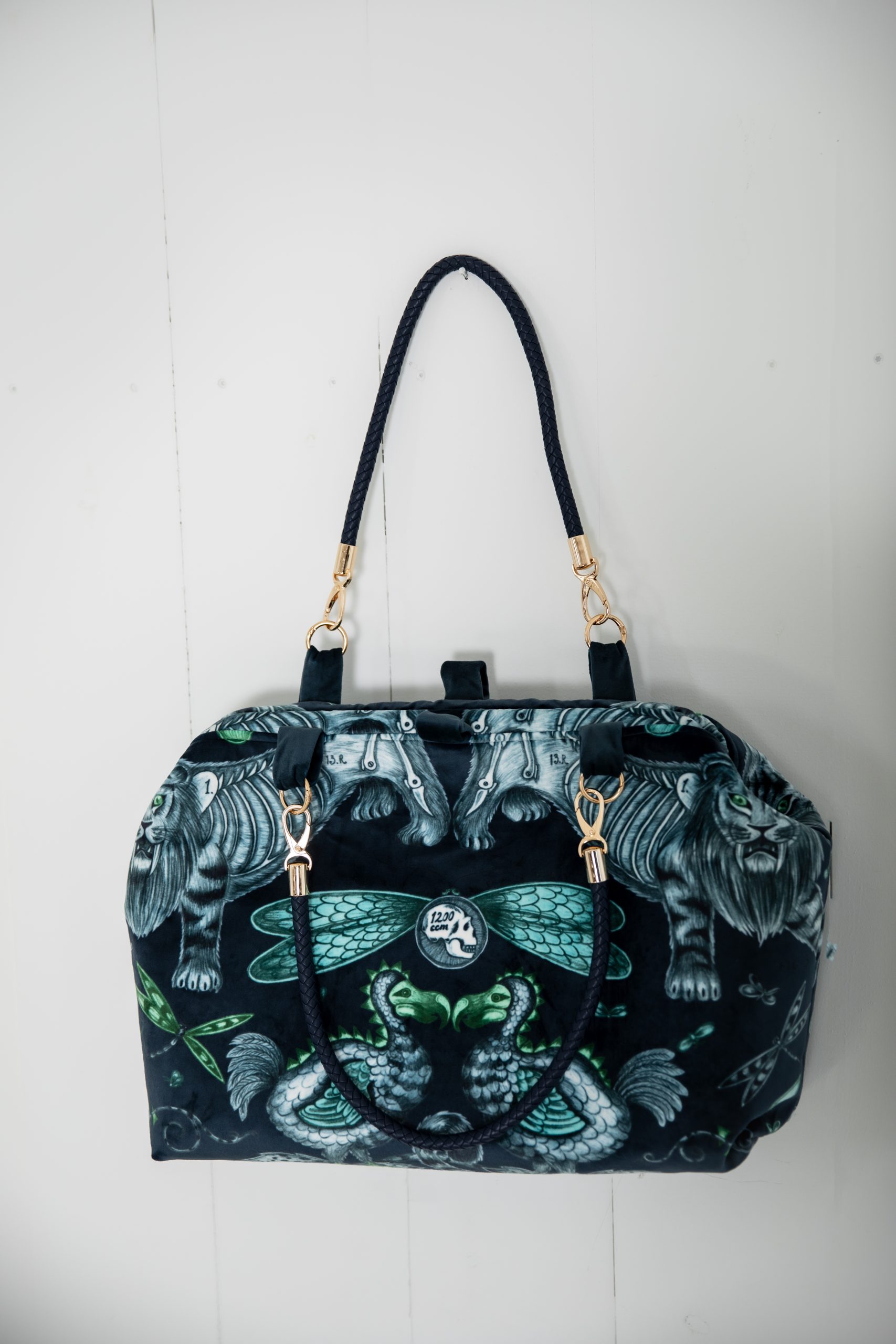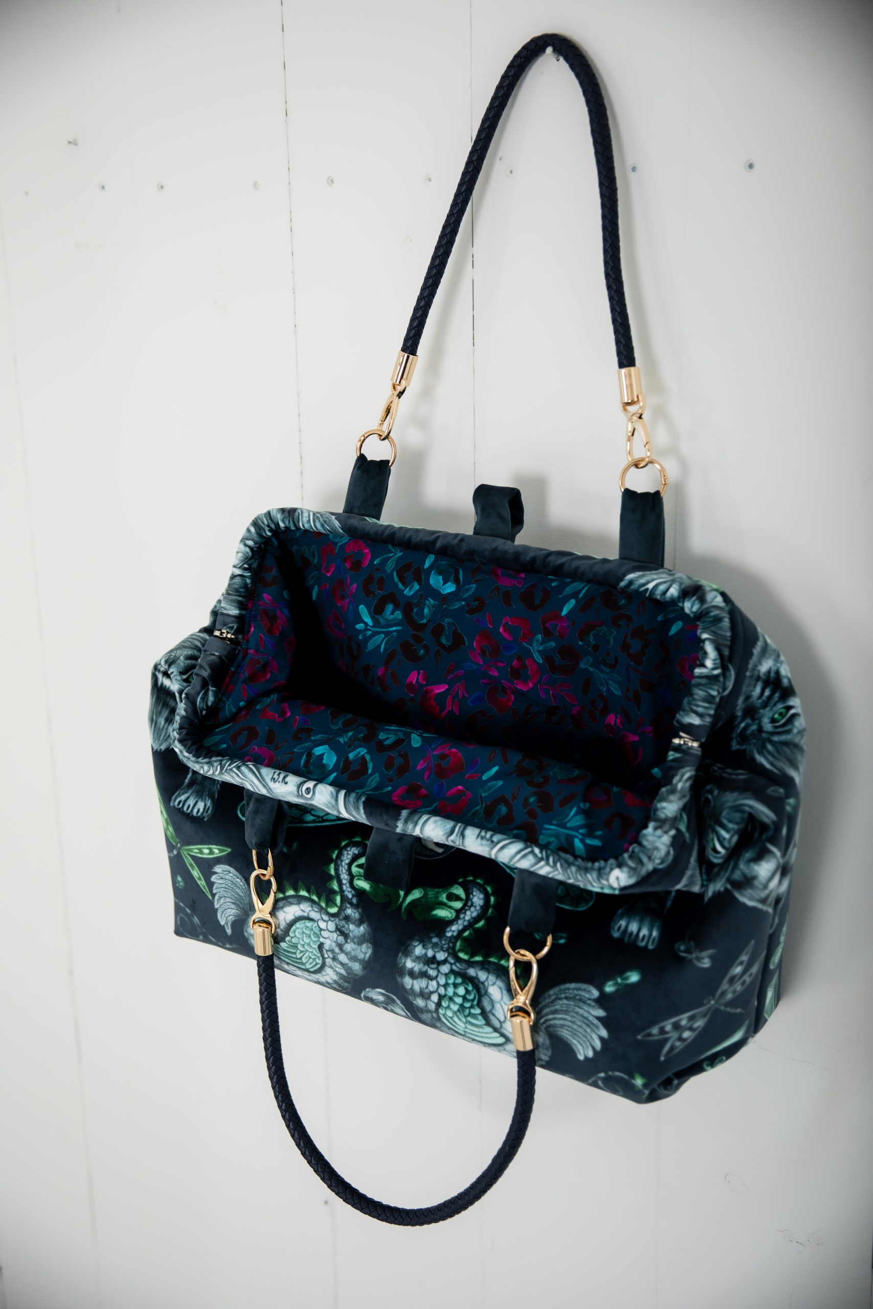 Obsessed doesn’t even begin to cover it! Sew yourself an ultra-chic oversized bag with this pattern from Sophie Tarrant. Made in a luxurious patterned velvet, this doctor’s bag pattern features a 16-inch-wide frame that snaps shut for easy closure and sturdy, braided straps. This doctor’s bag is lightweight but large enough to hold a set of clothes and essentials, making it a great option for a fabulous overnight bag.