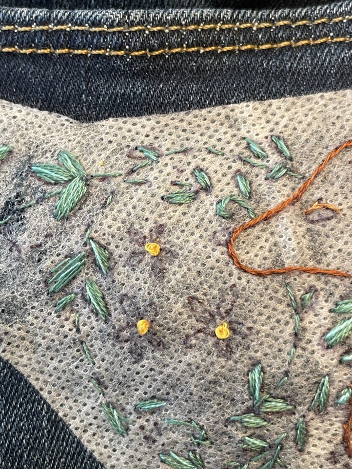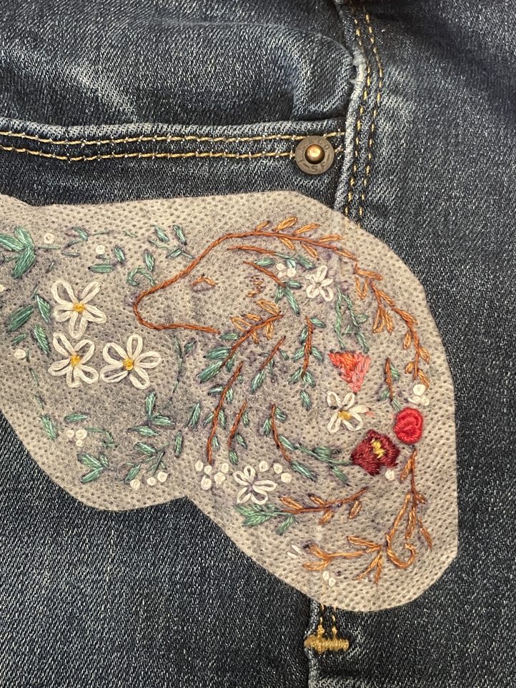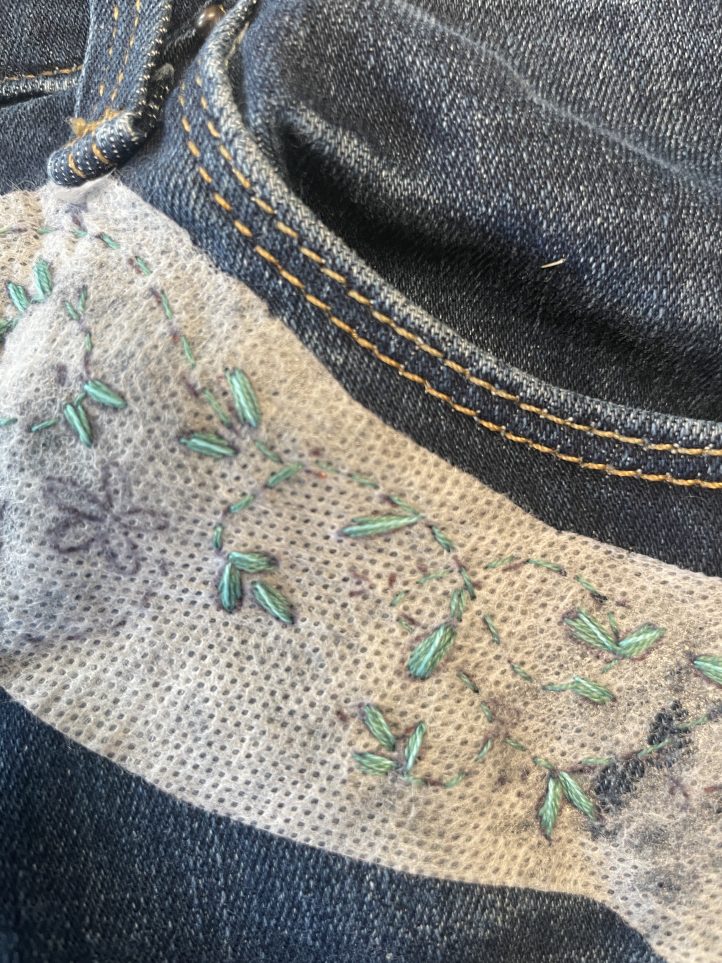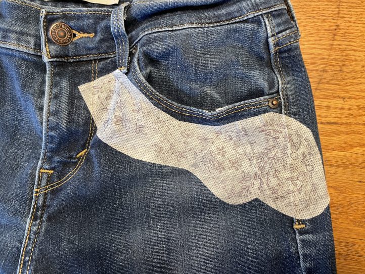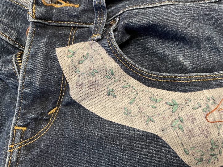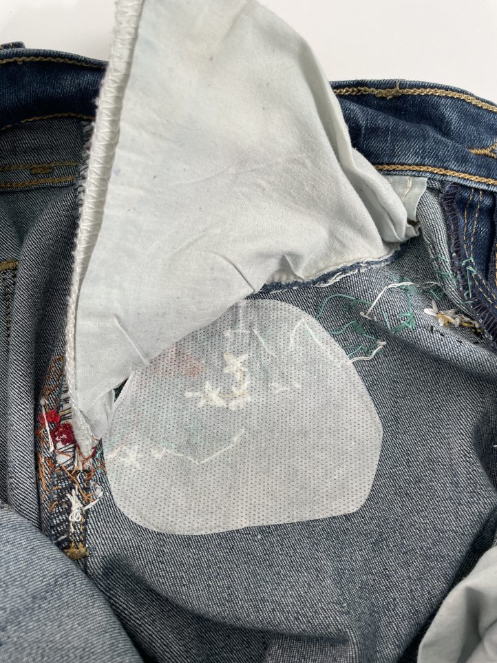 9. Optional: You may want to iron on a piece of interfacing on the inside of your jeans to cover the embroidery stitches.