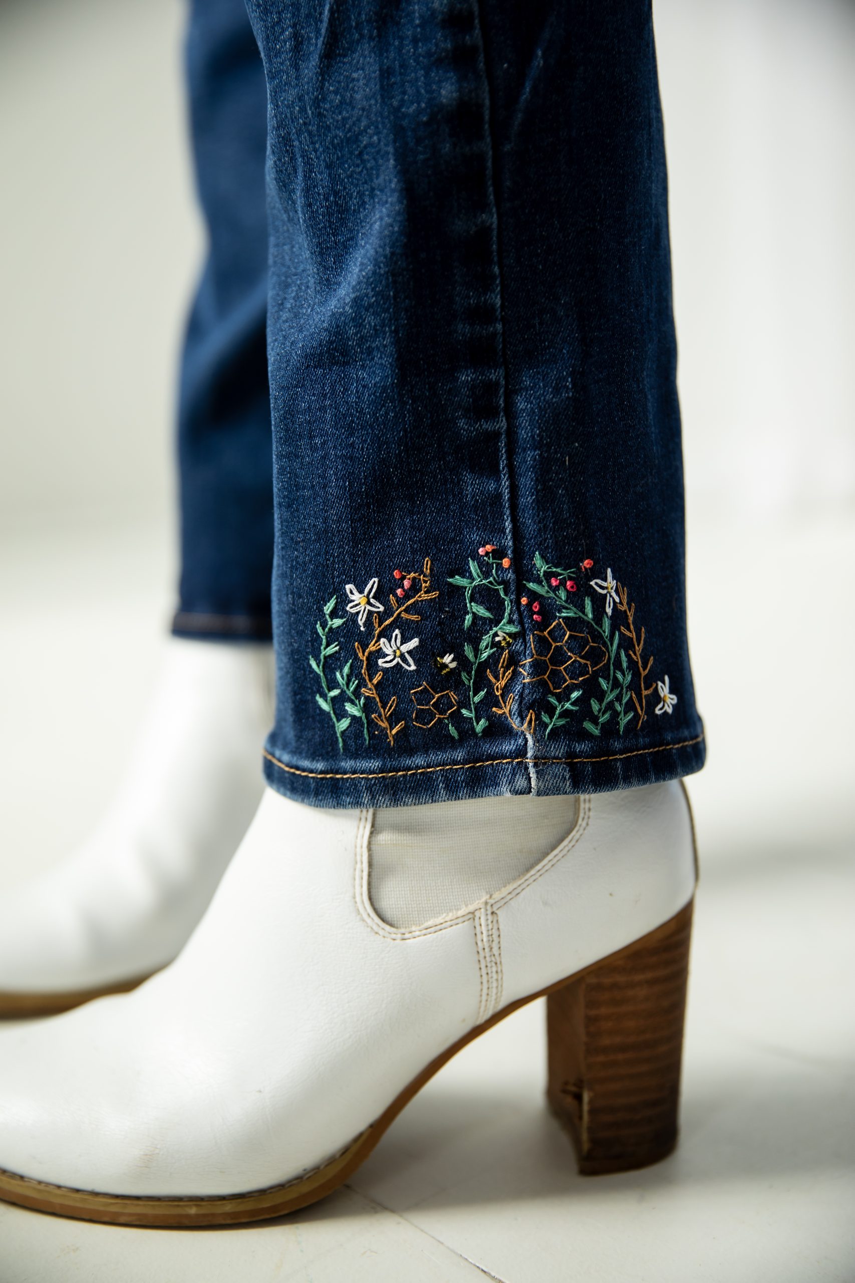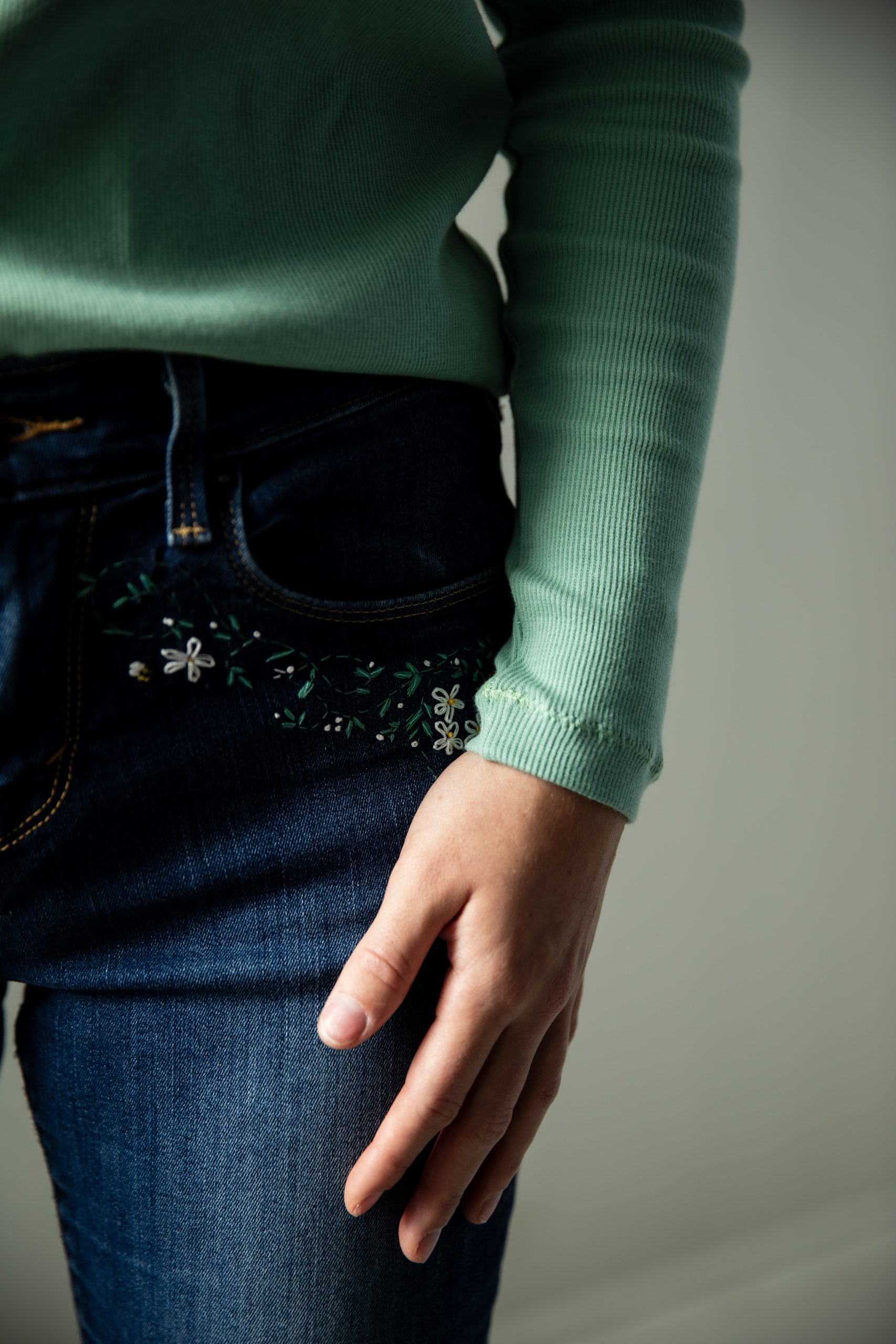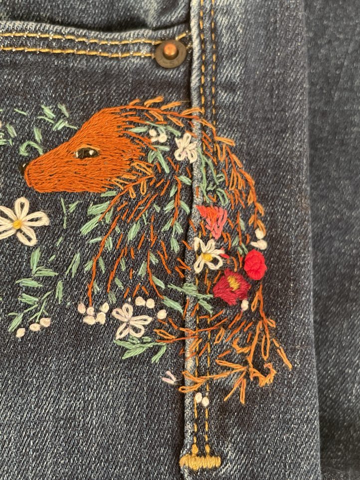 9. Optional: You may want to iron on a piece of interfacing on the inside of your jeans to cover the embroidery stitches.