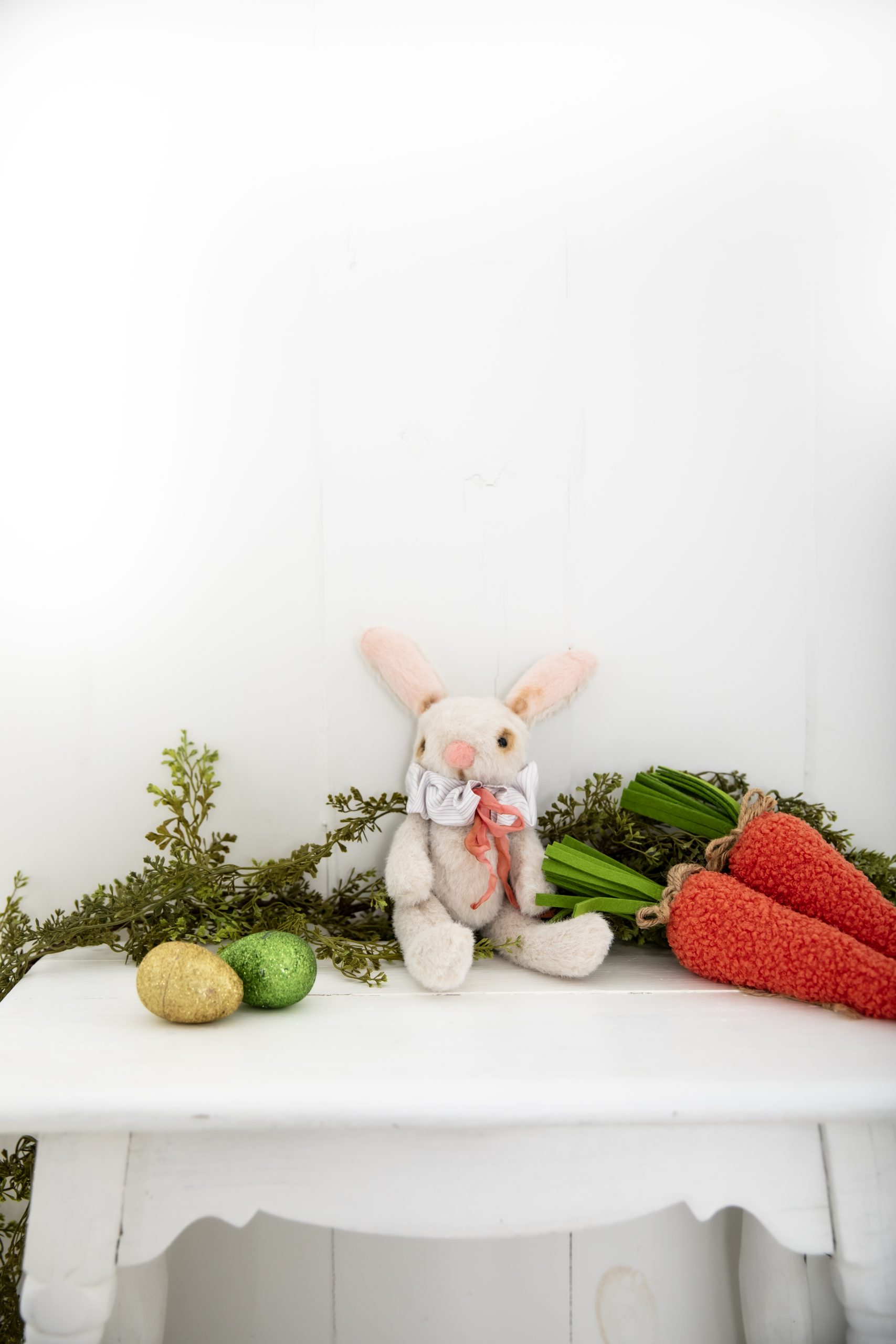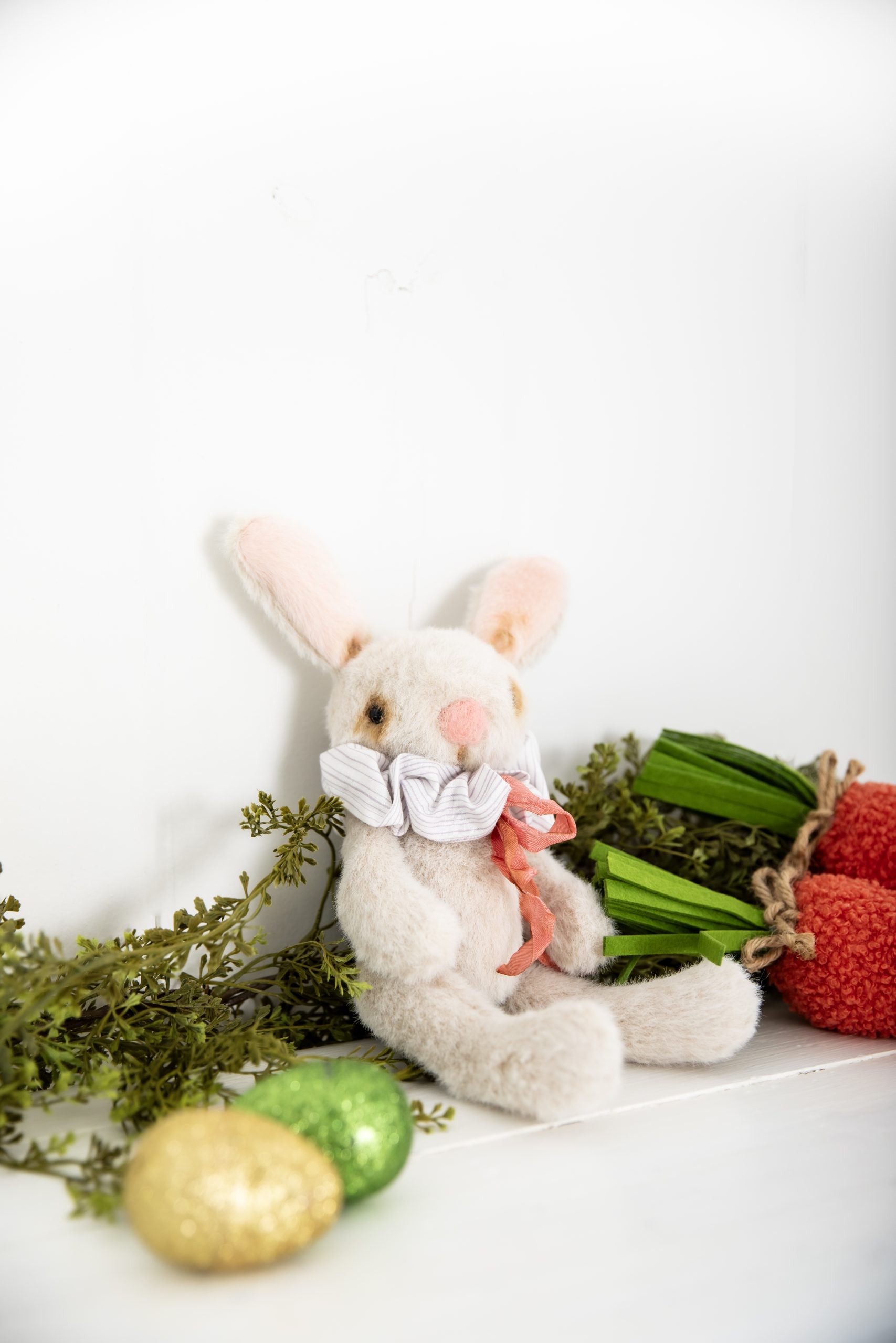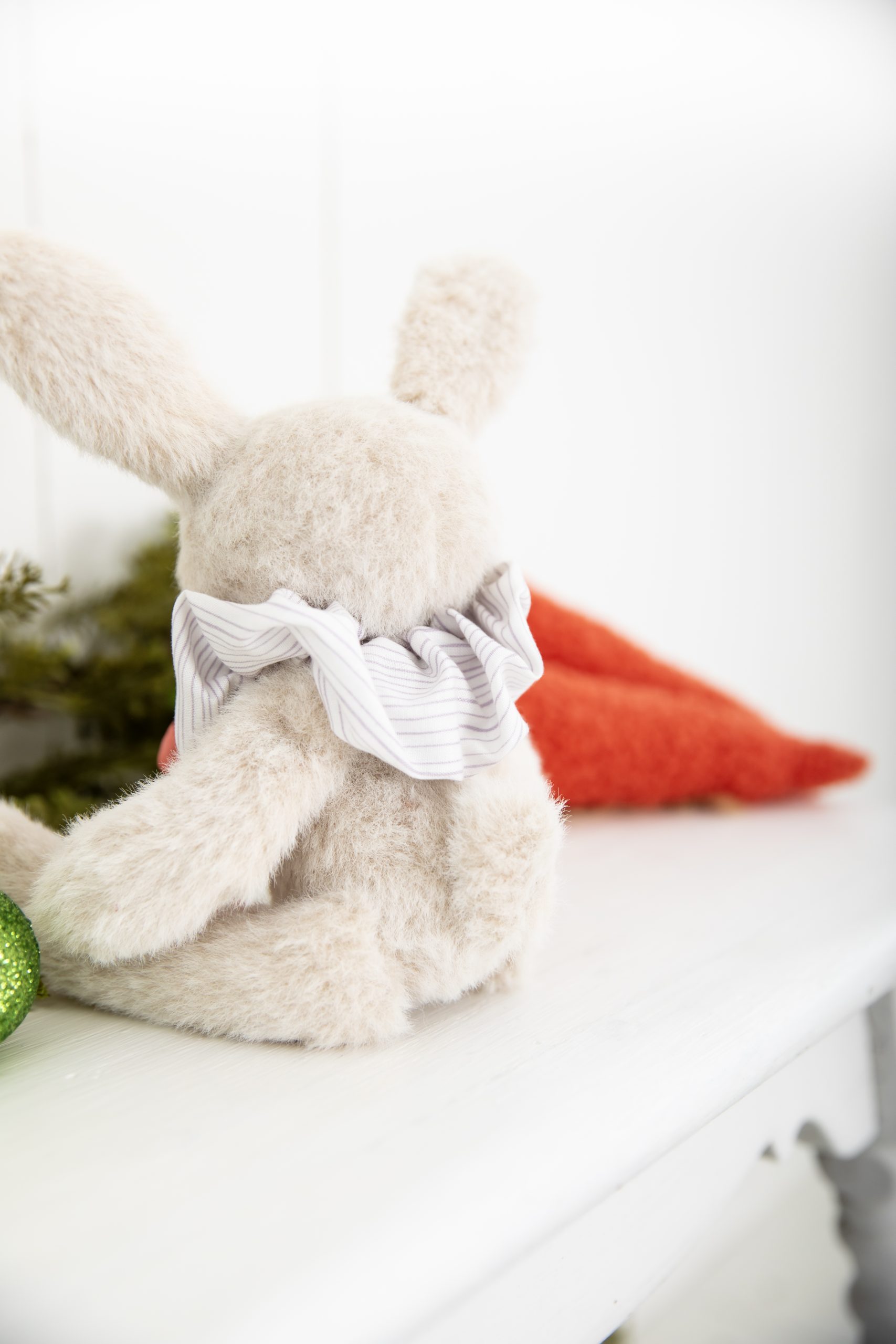 - Thread the length of ribbon through the tube you created. Tie onto the bunny and adjust to create pleats.