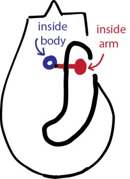 - Stuff the arms lightly and close the opening with a ladder stitch, knotting and burying the thread end.