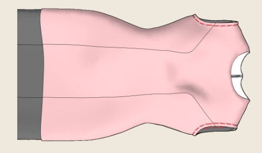 - After sewing the sides, iron the seams open, and turn the dress inside out to reveal the right side of the lining. Now, staystitch the armhole of the lining to that of the main fabric.