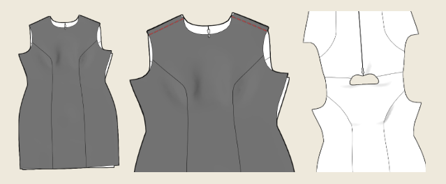 This pattern is a lined fitted mini dress with puff sleeve and a zipper closure.