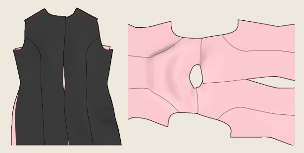 - To sew the sides of the dress, first pull the front lining and match up the sides with that of the back lining.