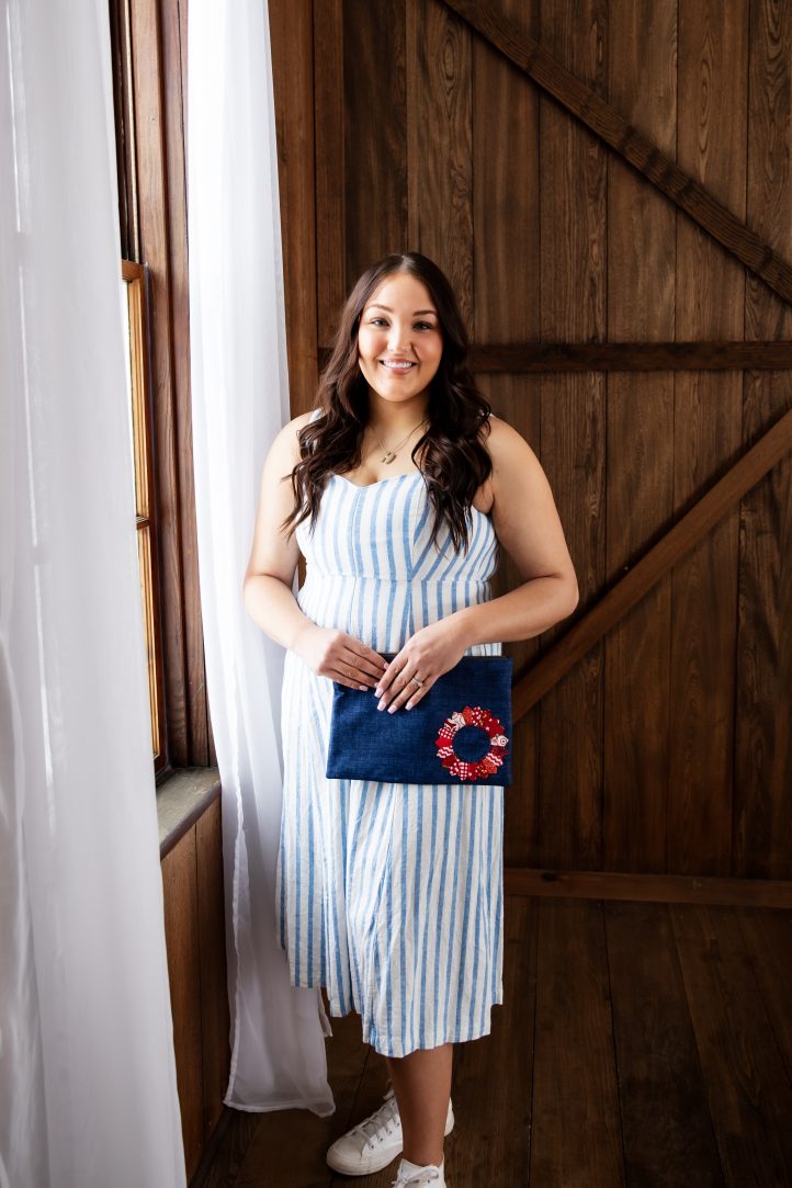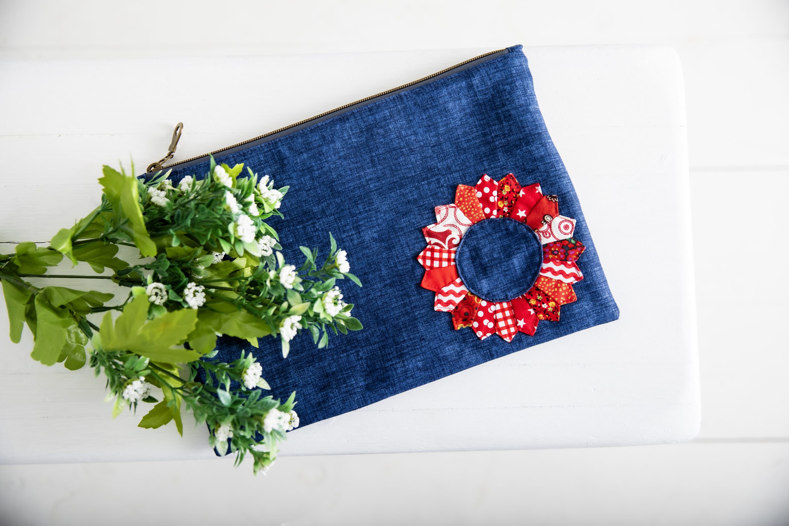 This sweet Dresden plate zipper pouch from Mallory Hill checks all of our boxes: fun details, classic design, and enough room to hold multiple items. Featuring a mini Dresden plate, this cute zipper pouch can easily be used as a stylish makeup bag or pencil pouch, but we also love it as a lightweight spring to summer clutch. If you’ve been saving up your fabric leftovers in bright colors and prints, this bag sewing pattern is a stylish way to show off those scraps.
