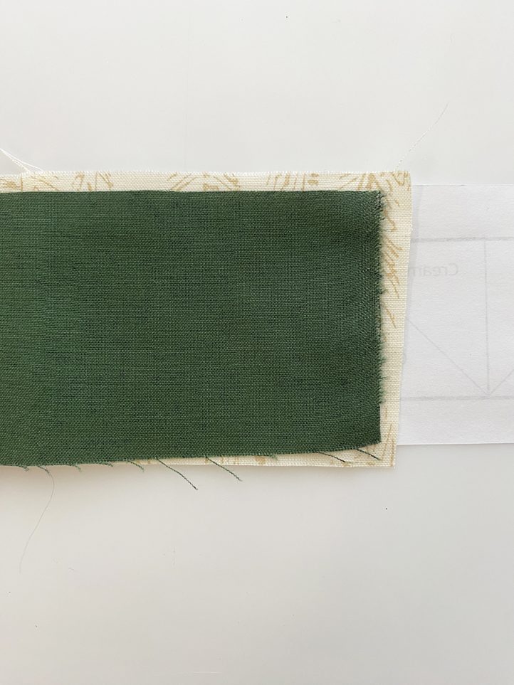 - Stitch on the printed side of the pattern over the line between the Cream and Green.