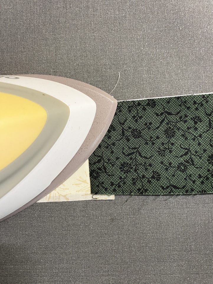 - Place Green fabric over the sections that have been sewn making sure you have enough to cover pattern sections.