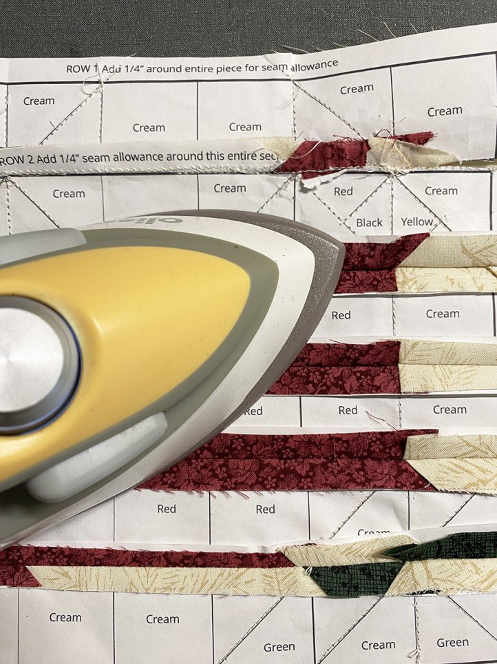 - Stitch rows together beginning with Row One and Two. Press seams open.
