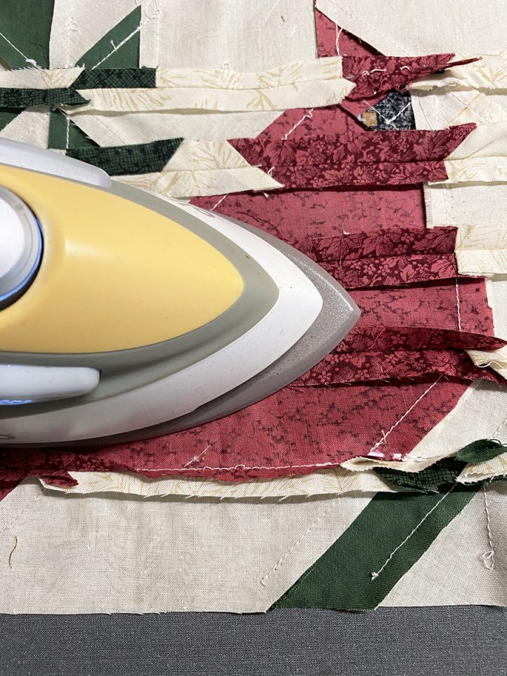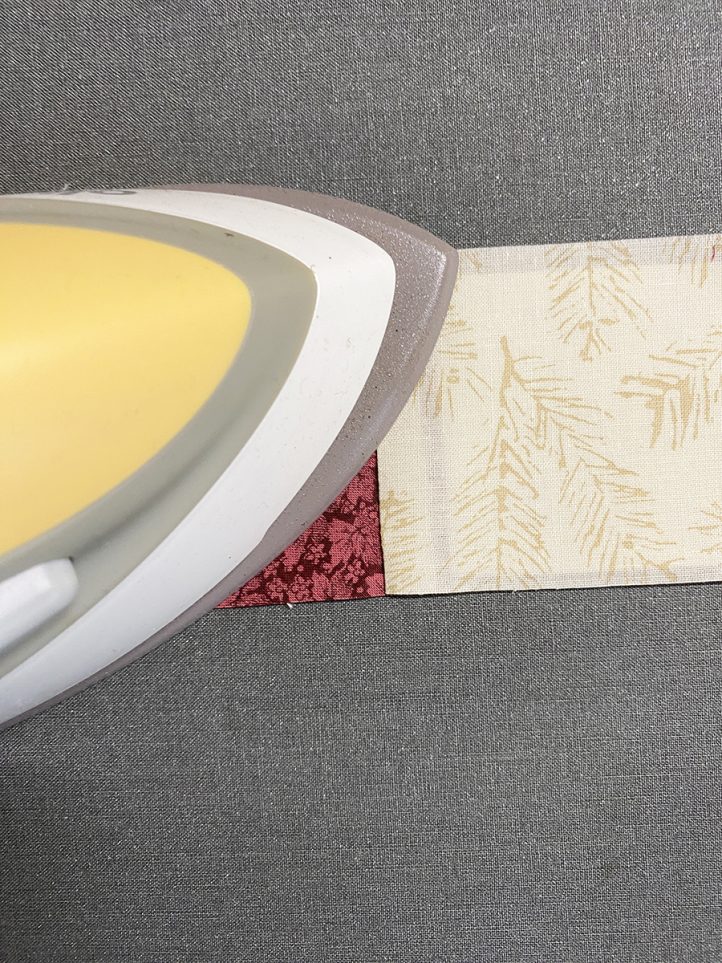 - Place Cream fabric over the sections that have been sewn making sure you have enough to cover pattern sections.