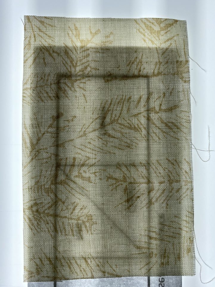 - Stitch on the printed side of the pattern over the line between the Green and Cream.