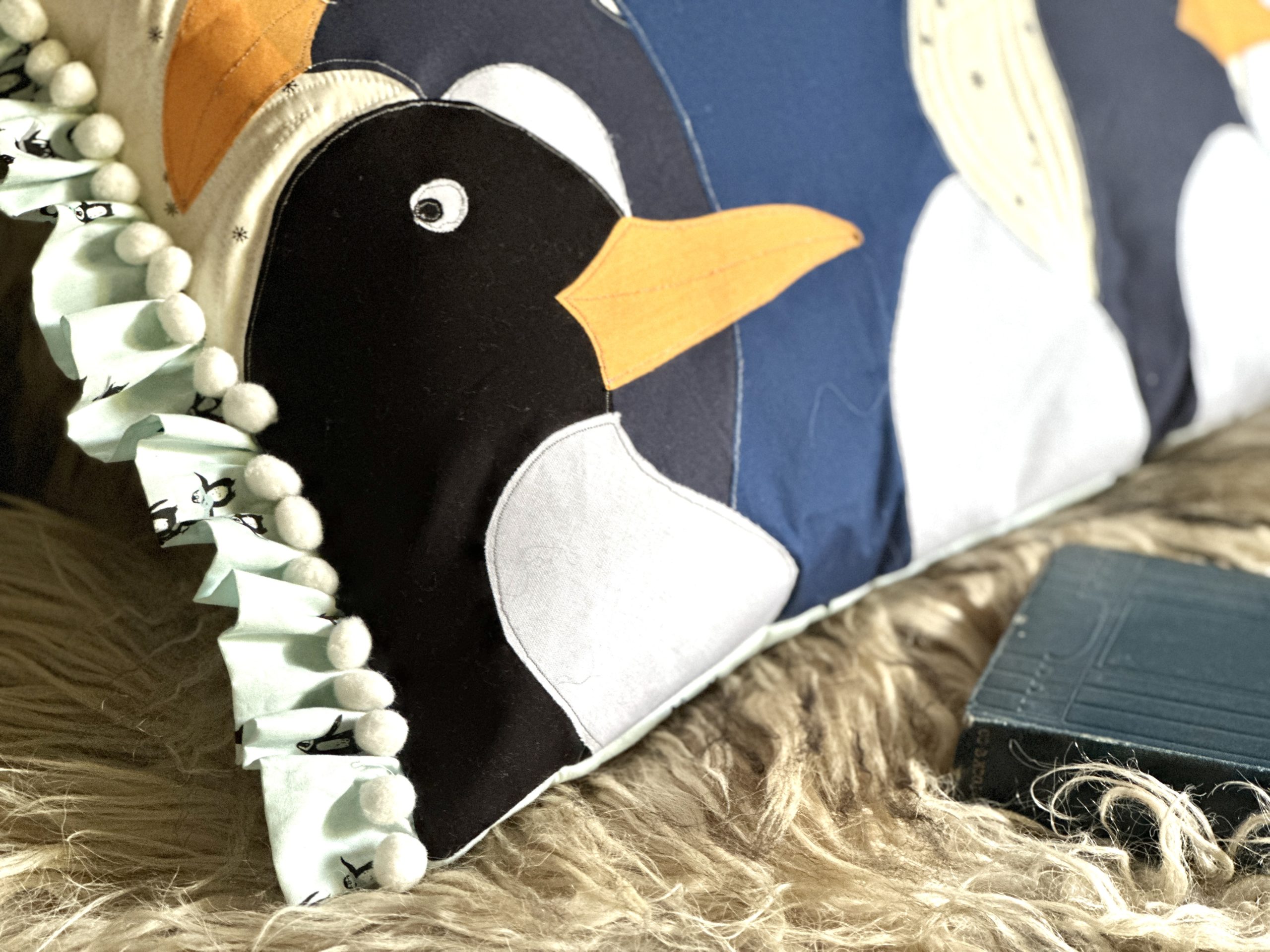 - 3/4 yd. penguin print fabric for the backing and frill. Debbie loves Frozen Flippers from the Arctic Take Capsule collection by AGF.