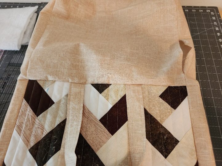 - Place the bag inside the lining. They will now be RIGHT SIDES TOGETHER, with the straps inside.