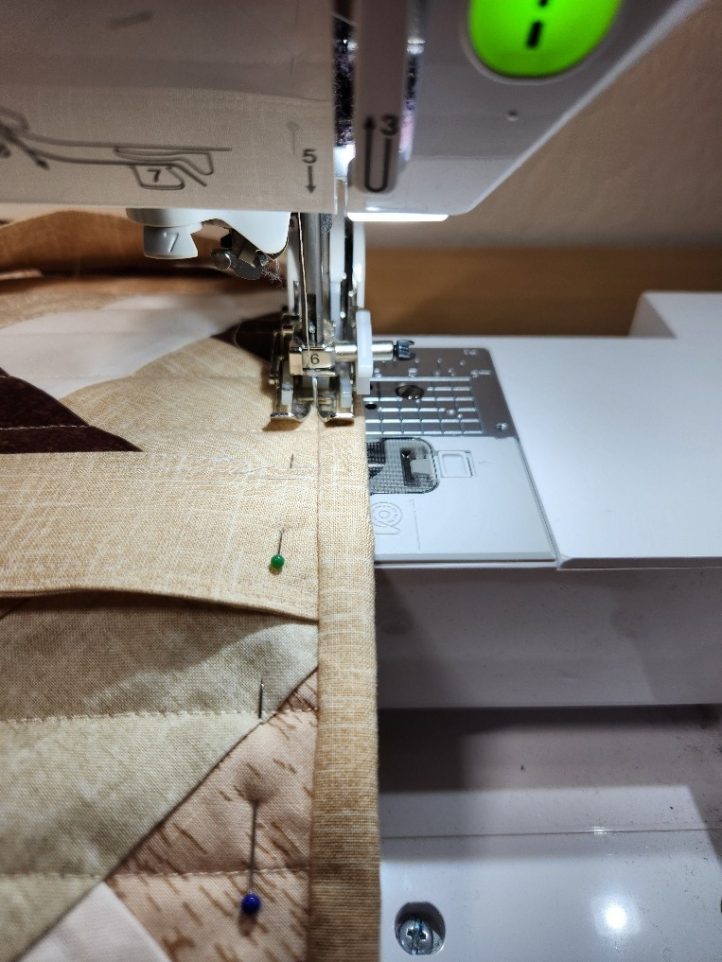 - Stitch in the ditch to obtain a finished edge that looks like binding.