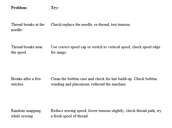 - Know When to Call a Technician. If your machine keeps breaking threads despite your efforts to fix the issue, the problem might be internal. Signs such as constant thread snapping, looping, or unusual noises may suggest timing or tension issues that require a professional inspection.