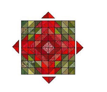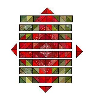 - With the remaining 8 red triangles, sew two triangles together to make points for the sides of the quilt.