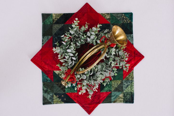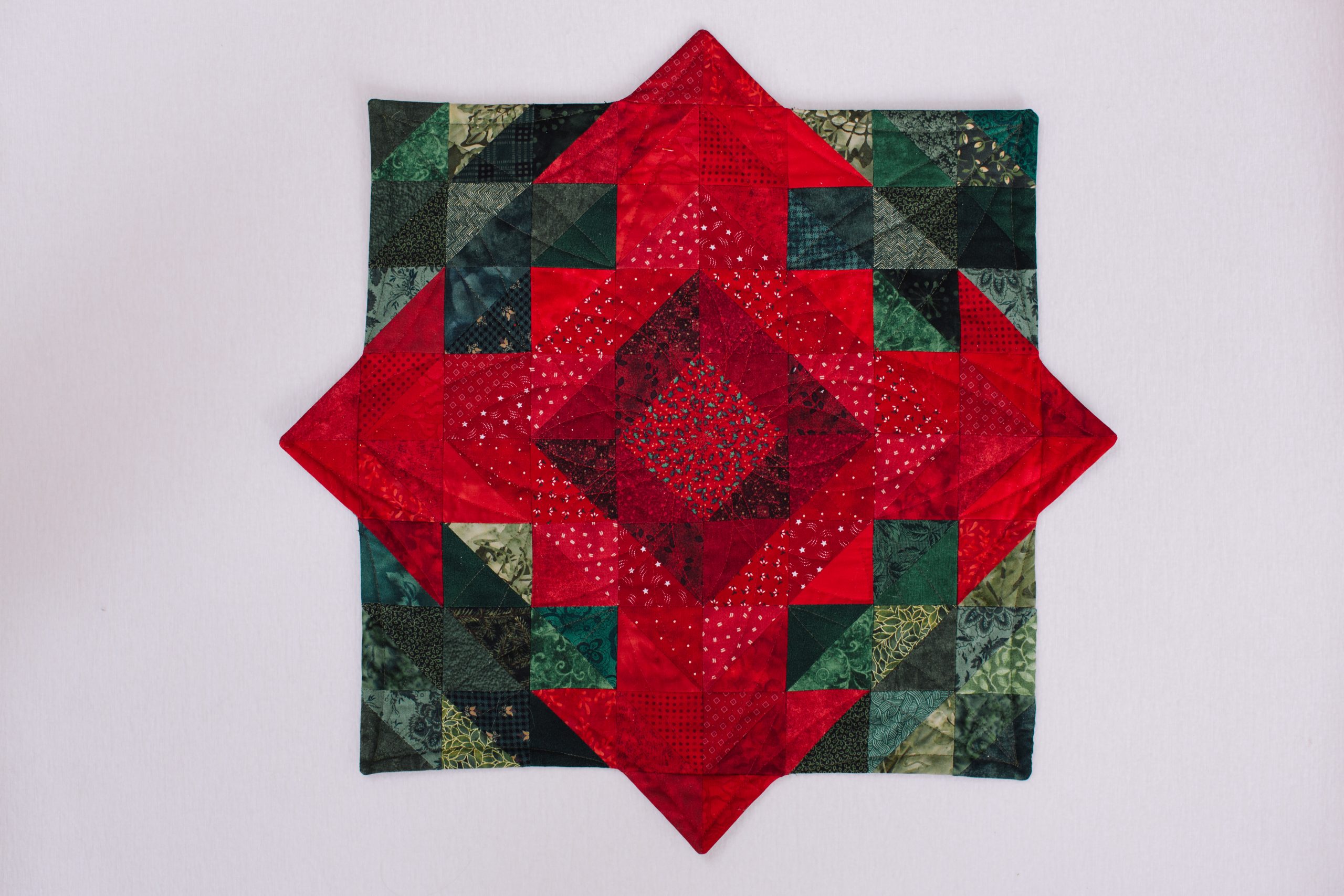 Complete your Christmas tablescape with a stunning quilted table mat with this pattern from Connie Kauffman. Originally featured in our sister magazine We Like Quilting, this Christmas quilting project is inspired by beautiful winter poinsettias, with a rich ruby center and alternating light and dark shades of green to create its leaf-like edges. This table mat pattern would make a gorgeous centerpiece for your Christmas dinner or an elegant display when paired with gold candles on a side table.